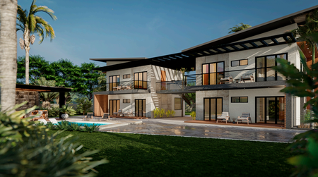 This four-plex boasts a new modern design that showcases contemporary architectural brilliance. Clean lines, sleek finishes, and an open-concept layout create a spacious and inviting ambiance. Four separate villas make up the property, each with its unique charm. Whether you are looking for a private sanctuary or a space to host friends and family, these villas offer versatility. Each villa features kitchen areas, inviting living rooms, and lovely terraces to soak in the picturesque surroundings.