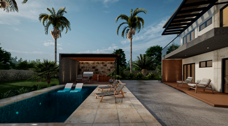 The outdoor space is a true paradise, providing ample room to enjoy Costa Rica's natural beauty. An inviting pool offers the perfect way to cool off on sunny days, and a rancho provides an ideal spot for outdoor dining or relaxation in the shade.